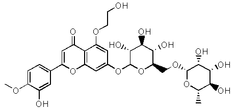 | 7-[[6-O-(6-脱氧-α-L-吡喃甘露糖基)-β-D-吡喃葡萄糖基]氧基]-3,5-O-二羟乙基-2-(3-羟基-4-甲氧苯基)-4H-1-苯并吡喃基-4-酮 7-[[6-O-(6-脱氧-α-L-吡喃甘露糖基)-β-D-吡喃葡萄糖基]氧基]-5-羟基-2-(3’-O-羟乙基-4’-甲氧苯基)-4H-1-苯并吡喃基-4-酮 |